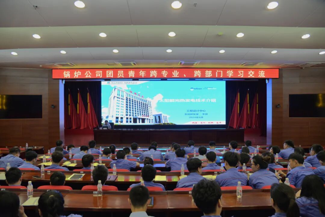 在交流现场,技术专家围绕太阳能光热发电技术原理、行业背景与发展现状、公司的技术研发历程以及光热发电衍生技术等4个方面进行了详细讲解,同时结合实践经验,介绍了太阳能光热发电型式、技术路线、系统组成等知识。来自公司各条战线、不同部门的近100名团员青年和团干部参加了本次学习交流。此次交流对于青年职工深入了解太阳能光热发电技术,在公司发展进程中敢于创新、勇于探索具有积极的促进作用。